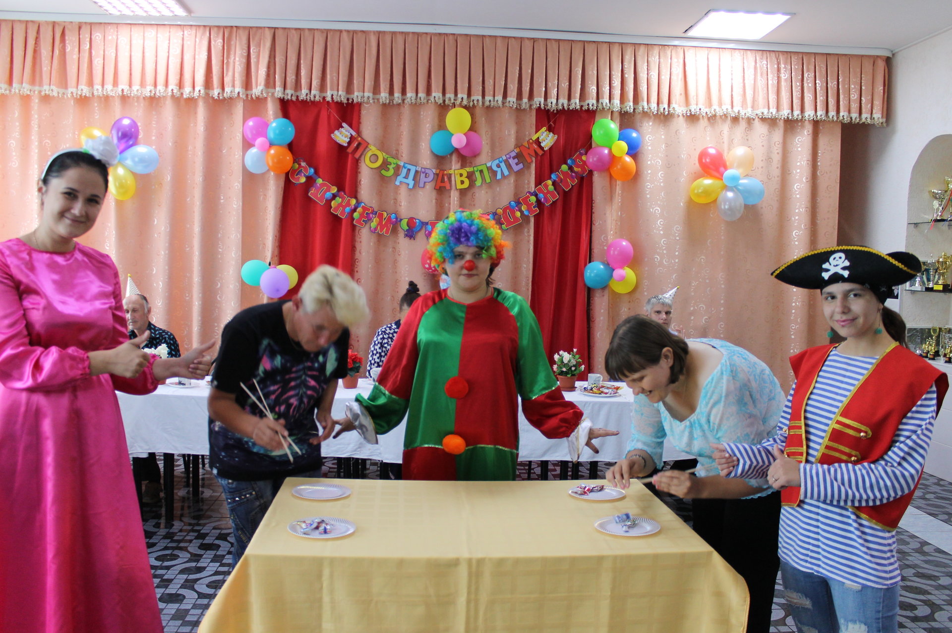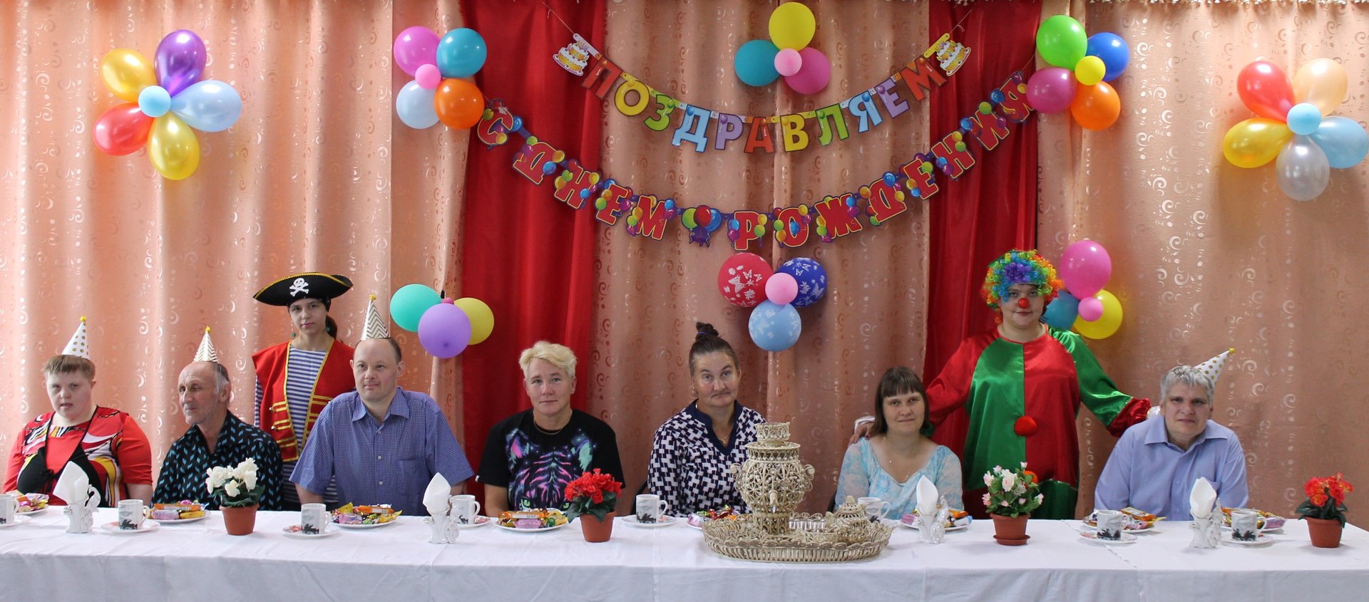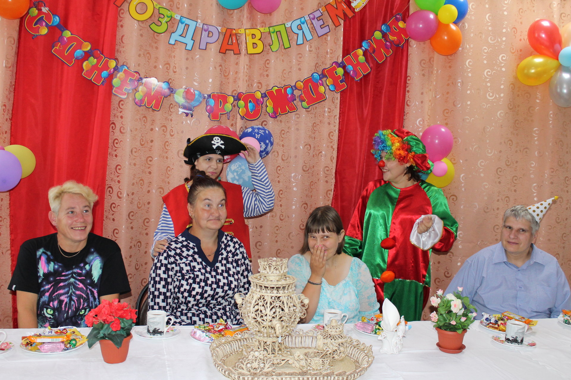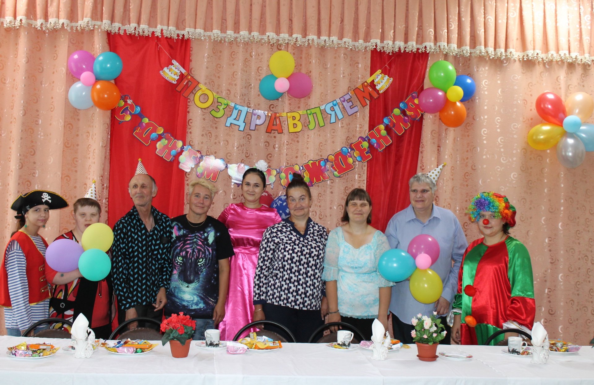28 июня 2019 года в нашем учреждении отметили дни рождения летних именинников. Лето – замечательная пора, это смех, улыбки и просто хорошее настроение. На праздник к получателям социальных услуг пришли веселый клоун и забавный пират. Вместе с ребятами они участвовали в конкурсах, пели праздничные песни и, конечно же, танцевали.