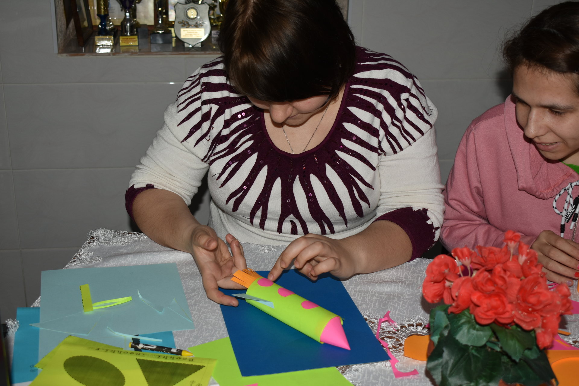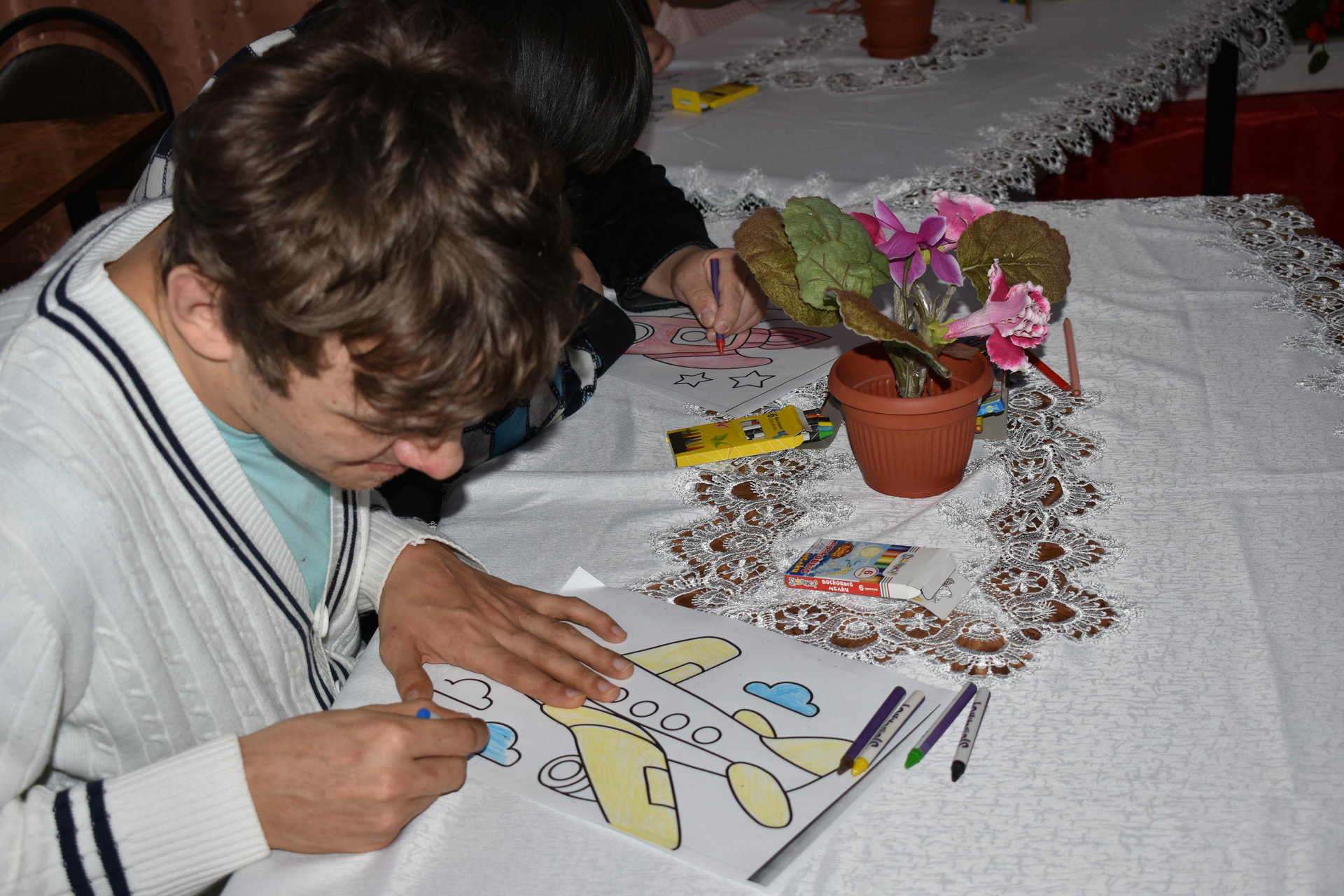 Особенно интересным и увлекательным было для получателей социальных услуг участие в мастер – классе по изготовлению летательных аппаратов. Одни ребята рисовали рисунки, а другие мастерили поделки своими руками. Все дружно принялись за дело, и работа закипела. Они очень старались и у них получились замечательные поделки и рисунки летательных аппаратов.