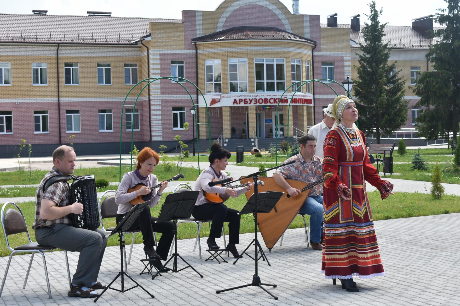В рамках реализации национального проекта «Демография» и регионального проекта «Активное долголетие» в Арбузовском интернате встречали гостей: ансамбль «Родные напевы» под управлением Заслуженного артиста РСФСР Валентина Петрачкова. Этот коллектив называют уникальным явлением в искусстве земли Владимирской. Коллектив уже более 40 лет пропагандирует русскую песню и народную музыку, поэтому публика всегда встречает его очень тепло, где бы он ни выступал – на сцене филармонии, в школах или на деревенских гуляниях.